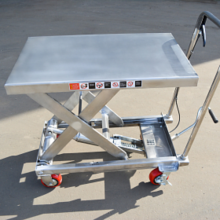 Тележка с подъемной платформой предназначена для работы в складских помещениях, производственных предприятий для транспортировки коробок, инструментов и других грузов. Способны поднимать и перемещать грузы весом до 0.5т на высоту до 900мм.
